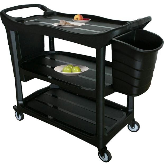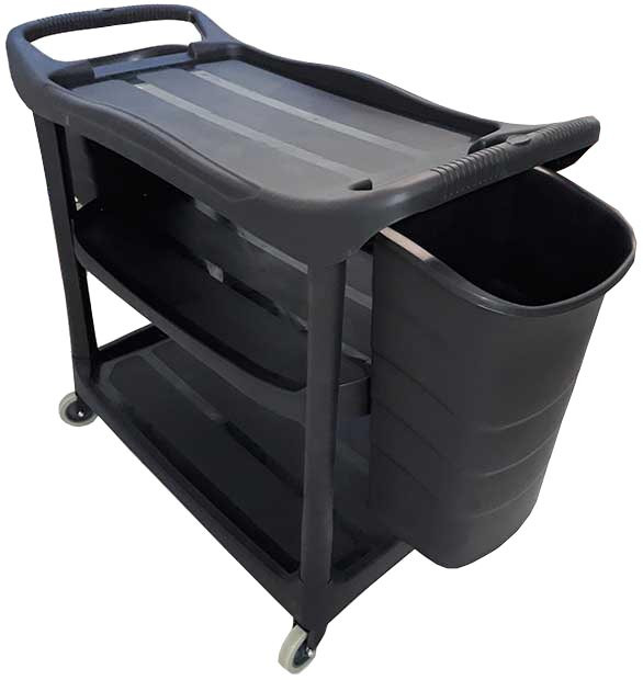 ترولی پلاستیکی کارلایز سه طبقه دو سطل رستورانی و هتلی