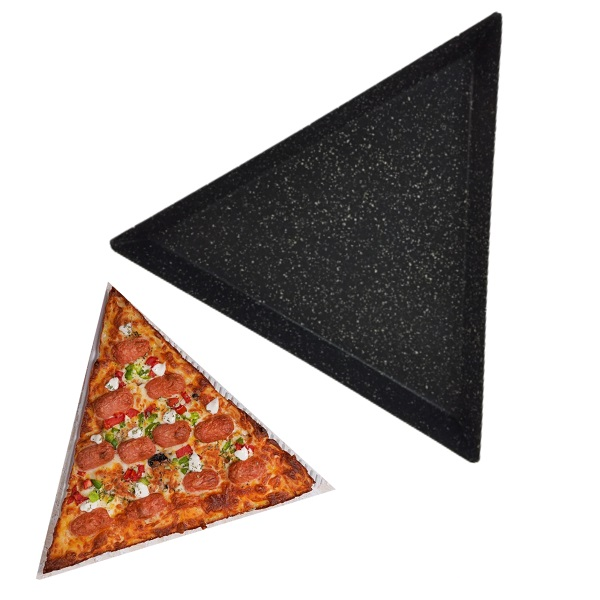 قالب پیتزا مثلثی سایز متوسط ۲۰ سانتی متری که به آن متساوی الضلاع هم میگویند. یک ایده بسیار جالبی برای پخت پیتزا سه گوش تک نفره در منزل یا فست فود میباشد. که شما طبق نیاز خود میتوانید سایز آن را سفارش دهید. در این نوع ظرف شما میتووانید پیتزا را به شکل یک برش پیتزا برای مشتری سرو نمایید.ضخامت این ظروف طوری در نظر گرفته شده است که پیتزا به خوبی پخته و اصلا خام یا سوخته نمیشود.